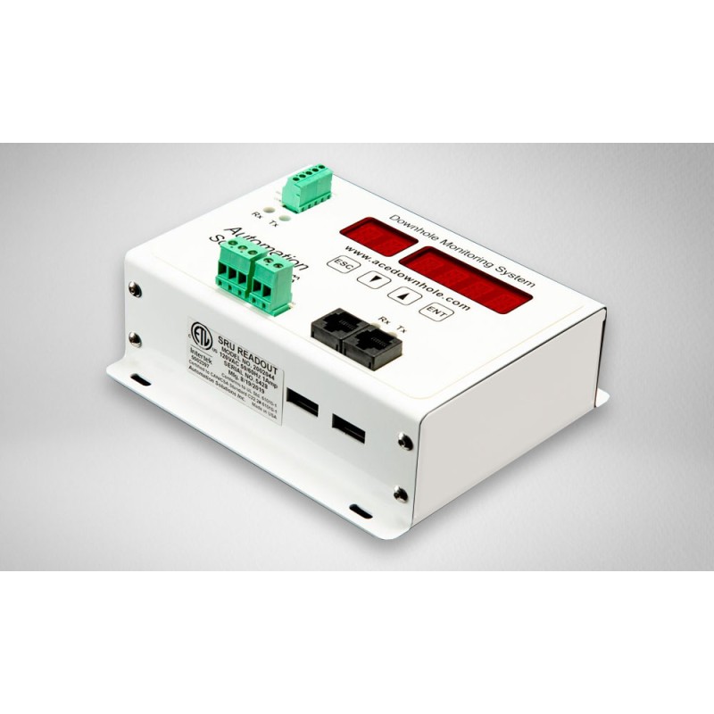 Surface Readout (SRU) This may be used with any of the downhole sensor options. The surface device serves several functions. First, it provides signal power to the downhole device, decodes and verifies encrypted information from the downhole unit and then displays the results on an alpha-numeric LED Display.